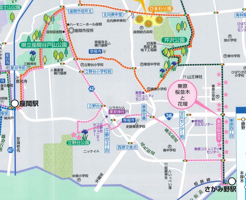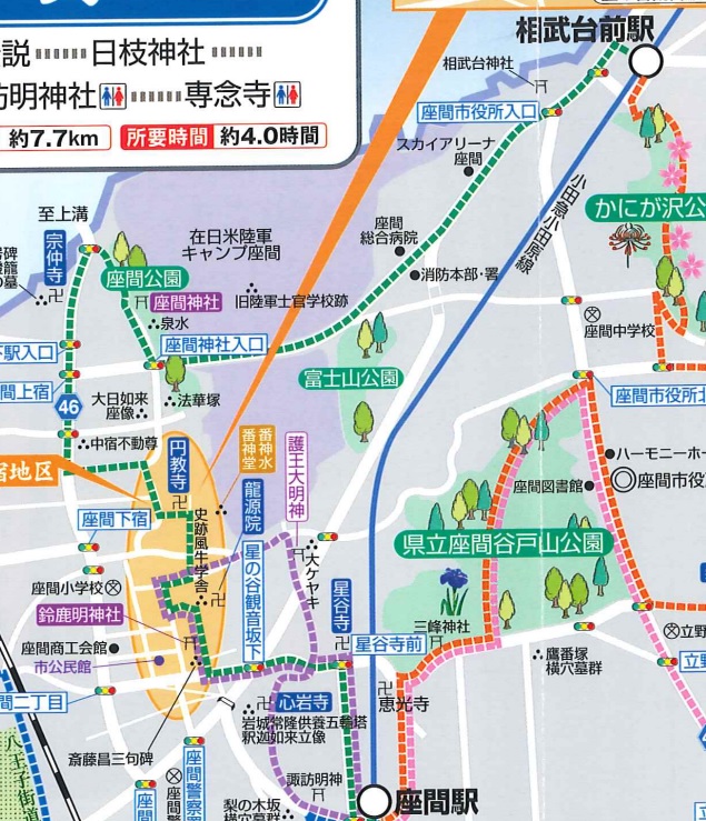 登録ポイント数:6ヶ所コース距離 7.7 Km座間駅(東口)→ 相武台前駅