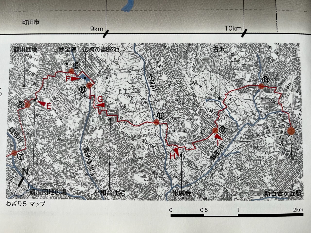 登録ポイント数:9ヶ所コース距離 5.0 Km鶴川駅→鶴川駅