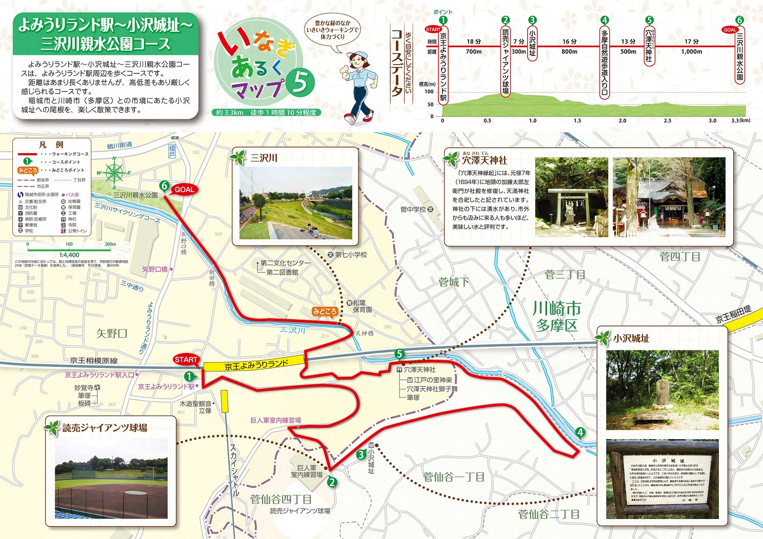 登録ポイント数:7ヶ所コース距離 5.0 Km新百合ヶ丘駅→黒川駅