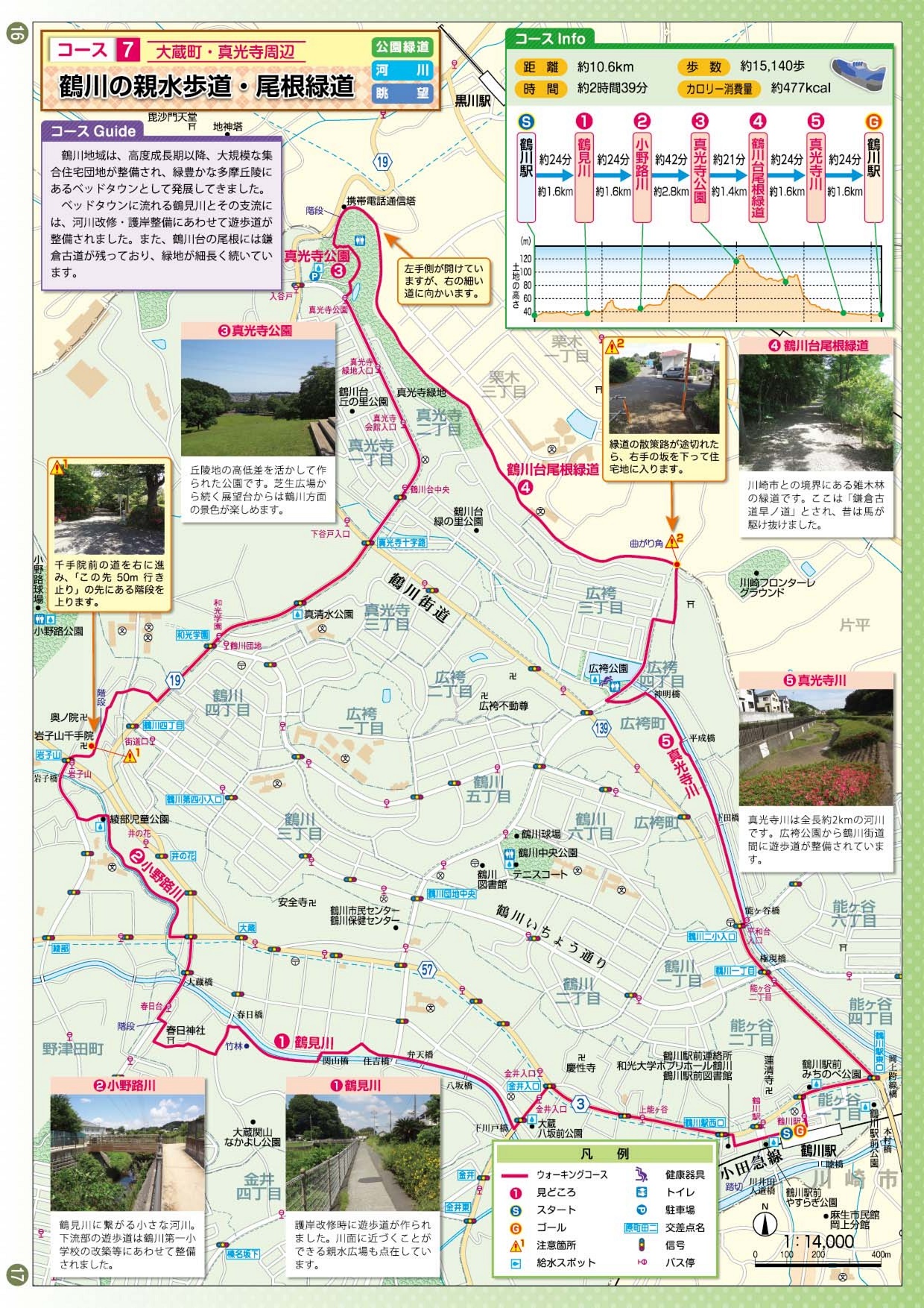登録ポイント数:15ヶ所コース距離 11.2 Km鶴川の親水歩道・尾根緑道